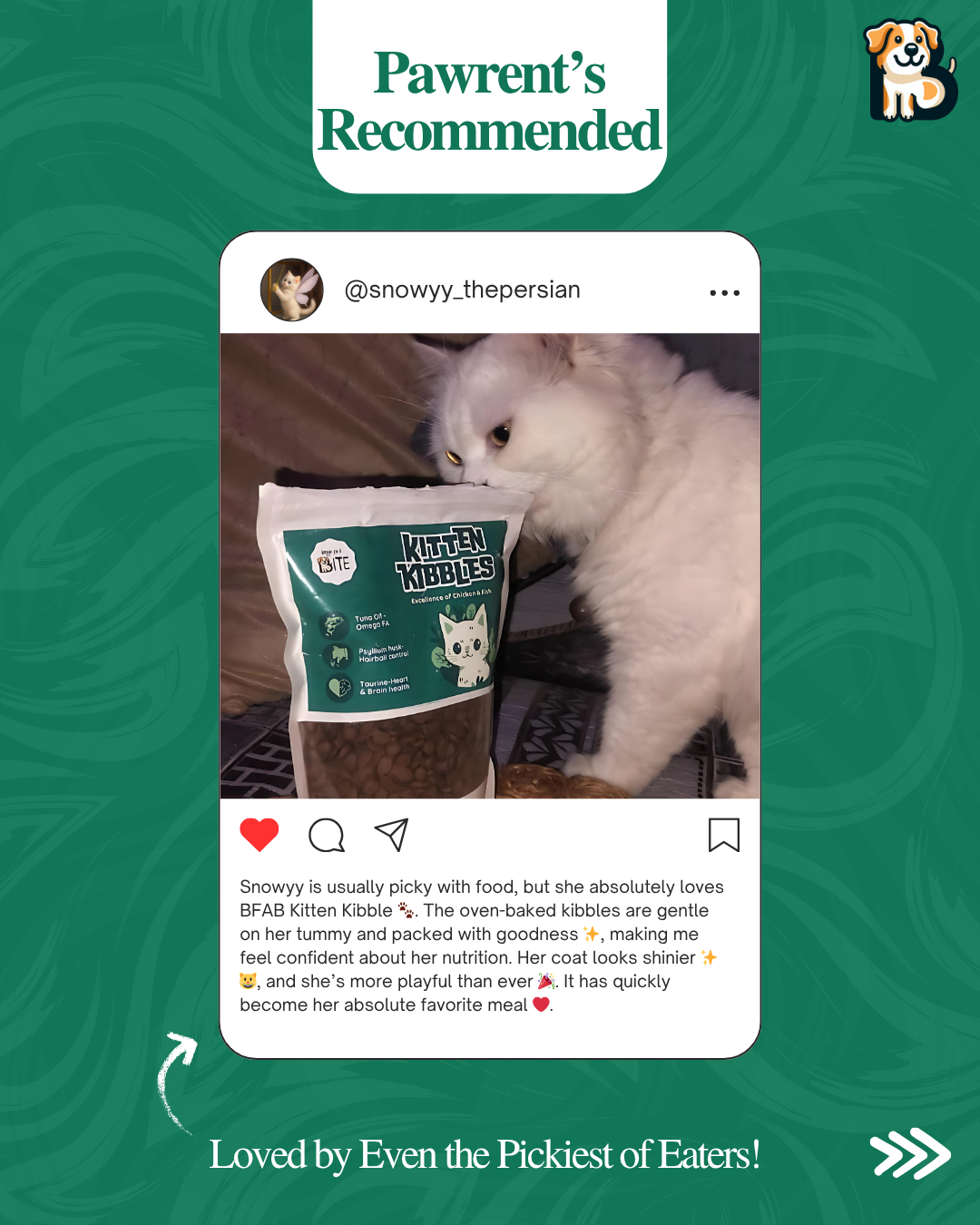 "My kitten Snowy absolutely loves this kibble! The crunch and flavour are perfect, and her energy levels have improved so much."