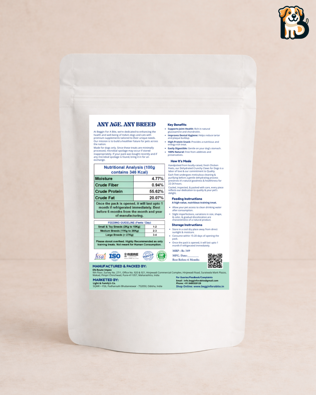 BFAB Dehydrated Crunchy Claws are crafted to naturally support your dog’s joint health, dental hygiene, and overall vitality with their rich, single-ingredient nutrition.